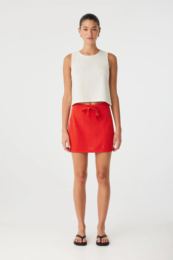 A soft, lightweight knit tank with a relaxed shape and flared hem. The Theo Tank features rolled edges at the neckline and arms for a natural finish. Designed for layering or wearing solo in warmer weather.