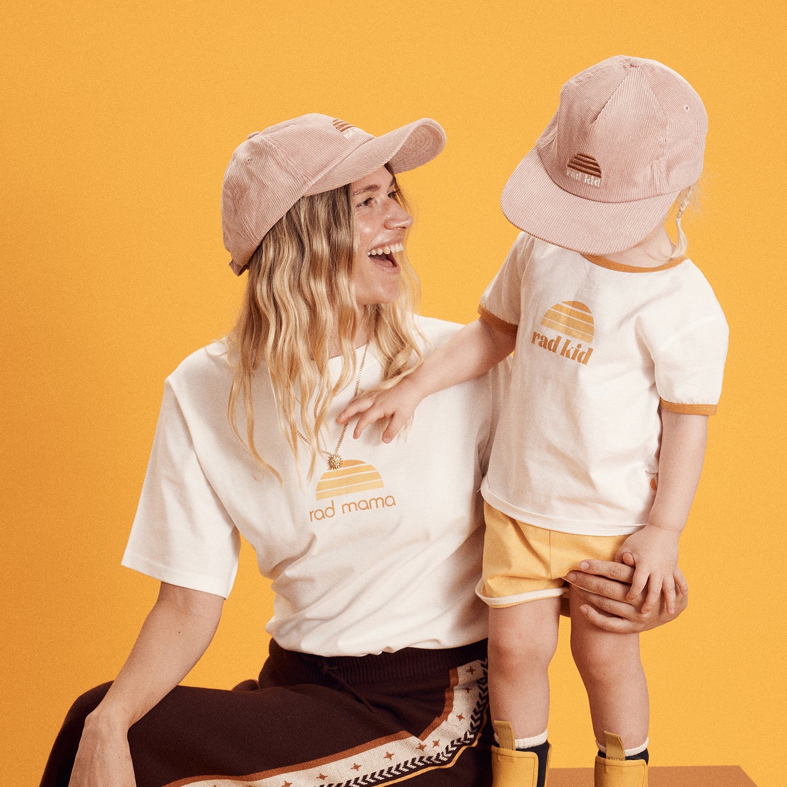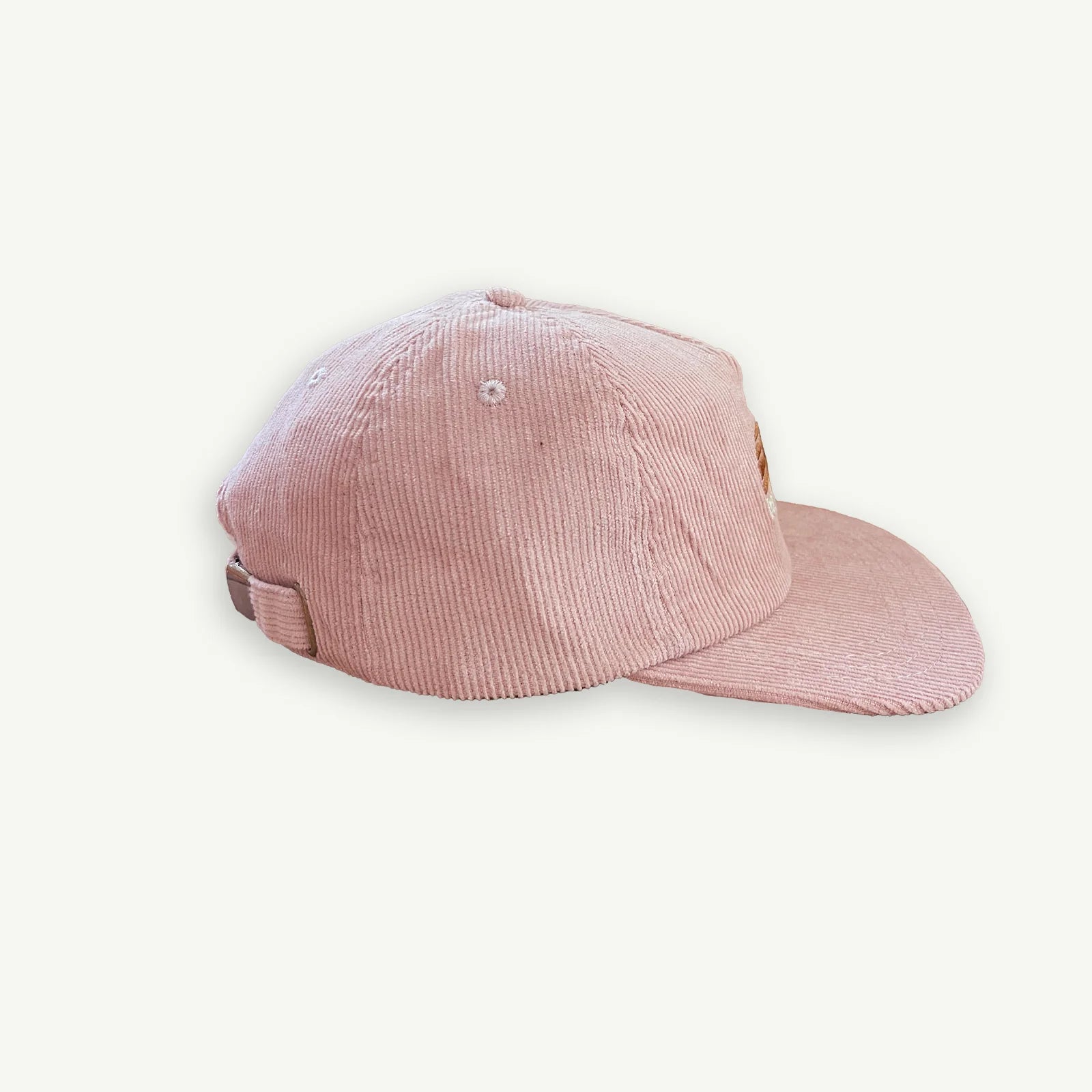 Our classic Sun logo embroidered onto a velvety tan cord. The perfect cap for your little rad kid. They can even match with a sibling, mama or dad.