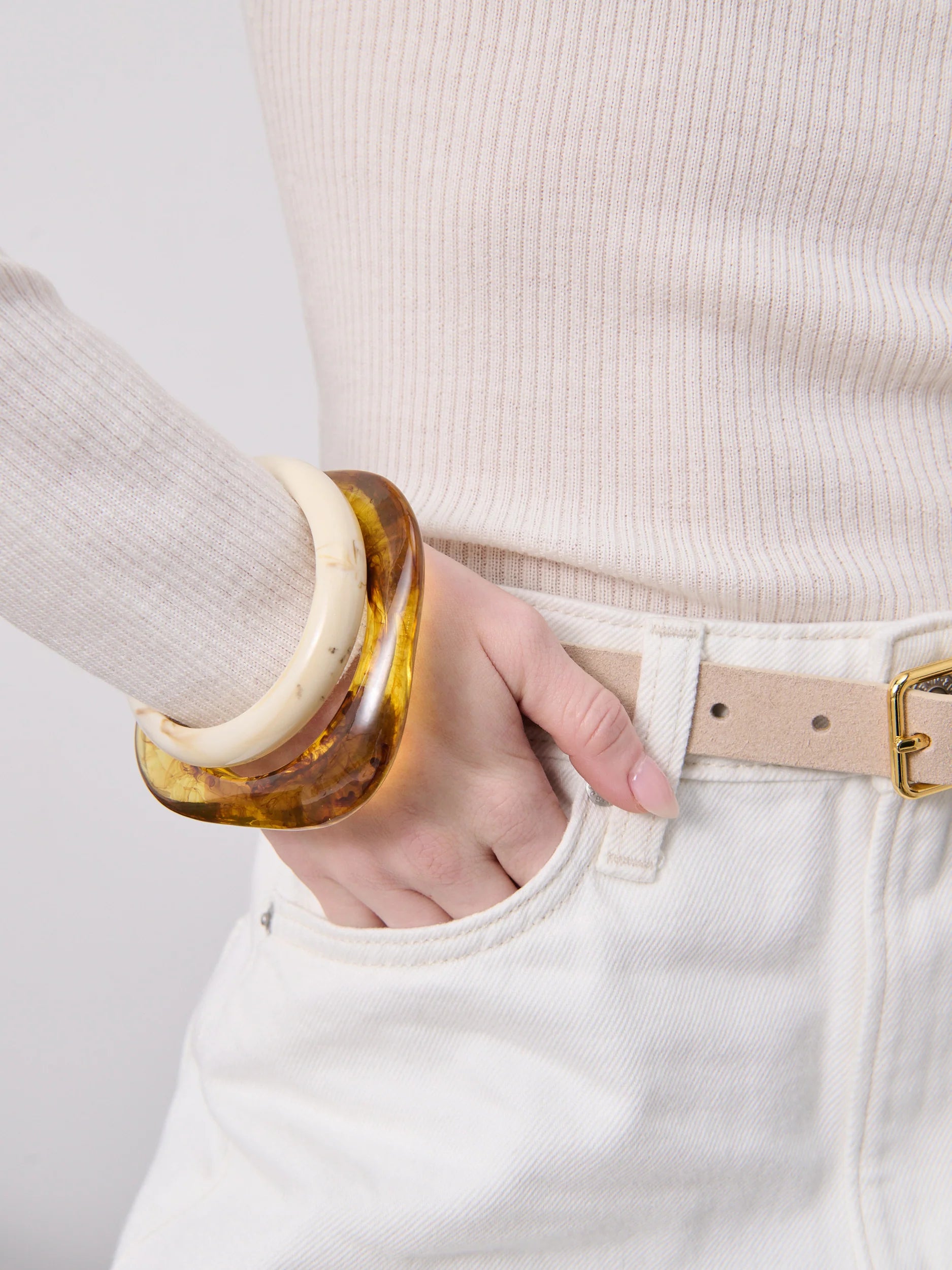 Add a chic touch to any outfit with ourOrganic Resin Bangle. With their lightweight feel, they are comfortable to wear all day long. A must-have accessory for any fashion lover.