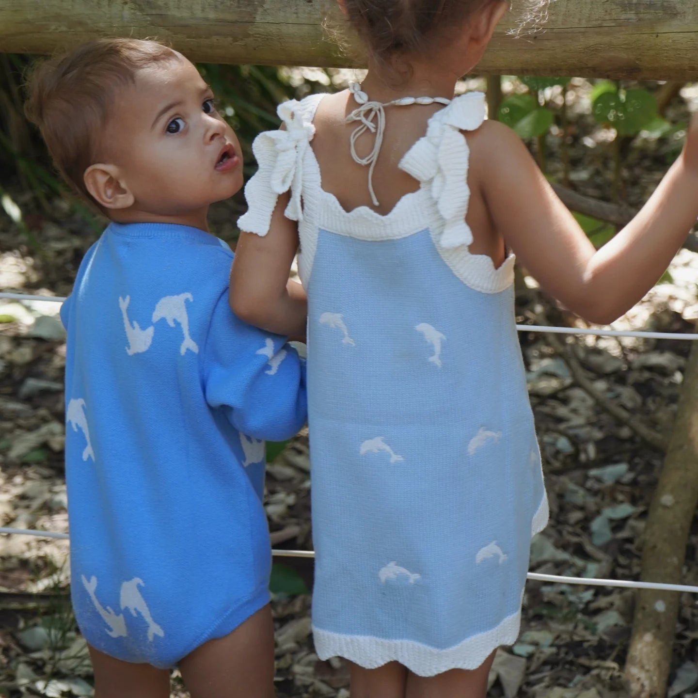 This dolphin-embroidered baby girl dress is perfect for playdates, parties, or just stealing the show. A must-have in cool children’s clothing!