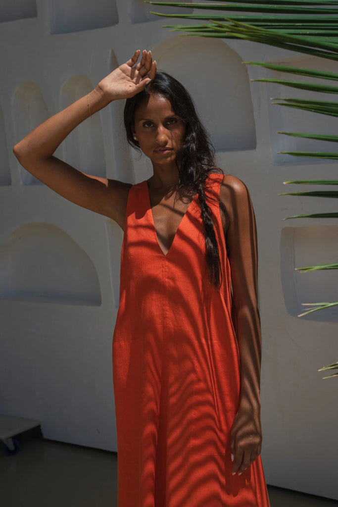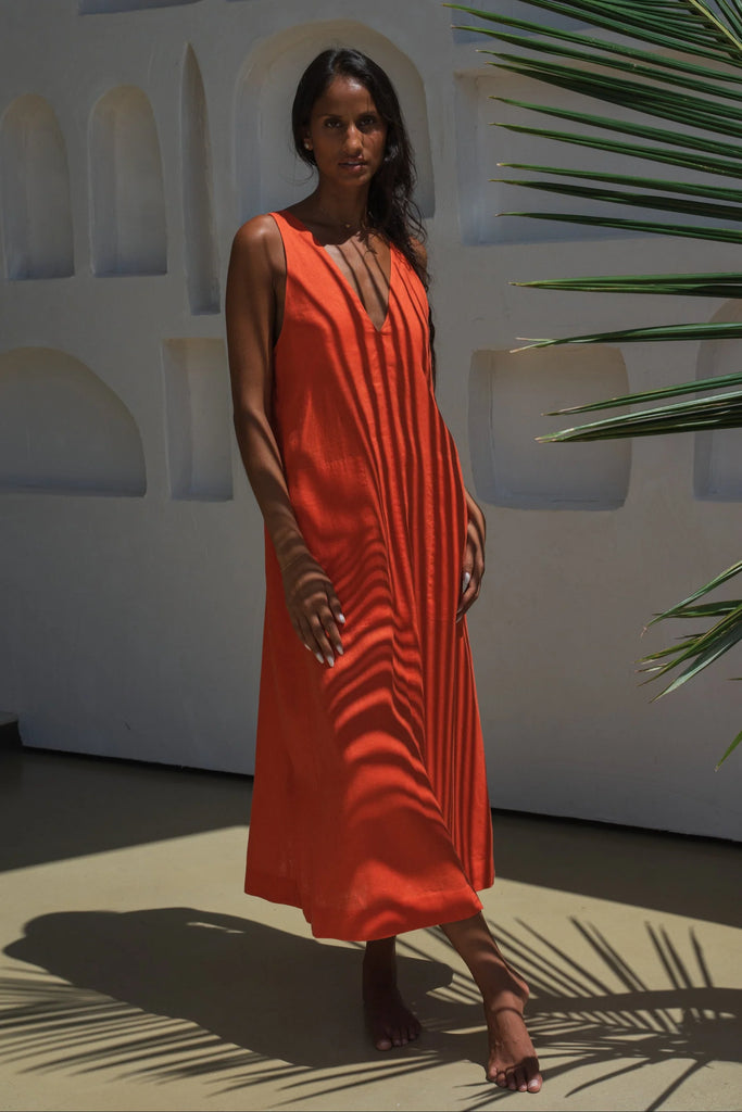 Effortless style meets everyday comfort in the IRIS Linen Dress. Crafted from 100% EUROPEAN FLAX® certified linen, this A-line midi dress features a flattering V neckline and seam pockets detailed with crisp top stitching. The elasticated back neckline ensures a comfy fit, while the subtle back hem slit adds just the right amount of flow. IRIS is bra-friendly, curvy-bust friendly, and petite-friendly - a versatile piece to dress up or down this Spring & Summer.