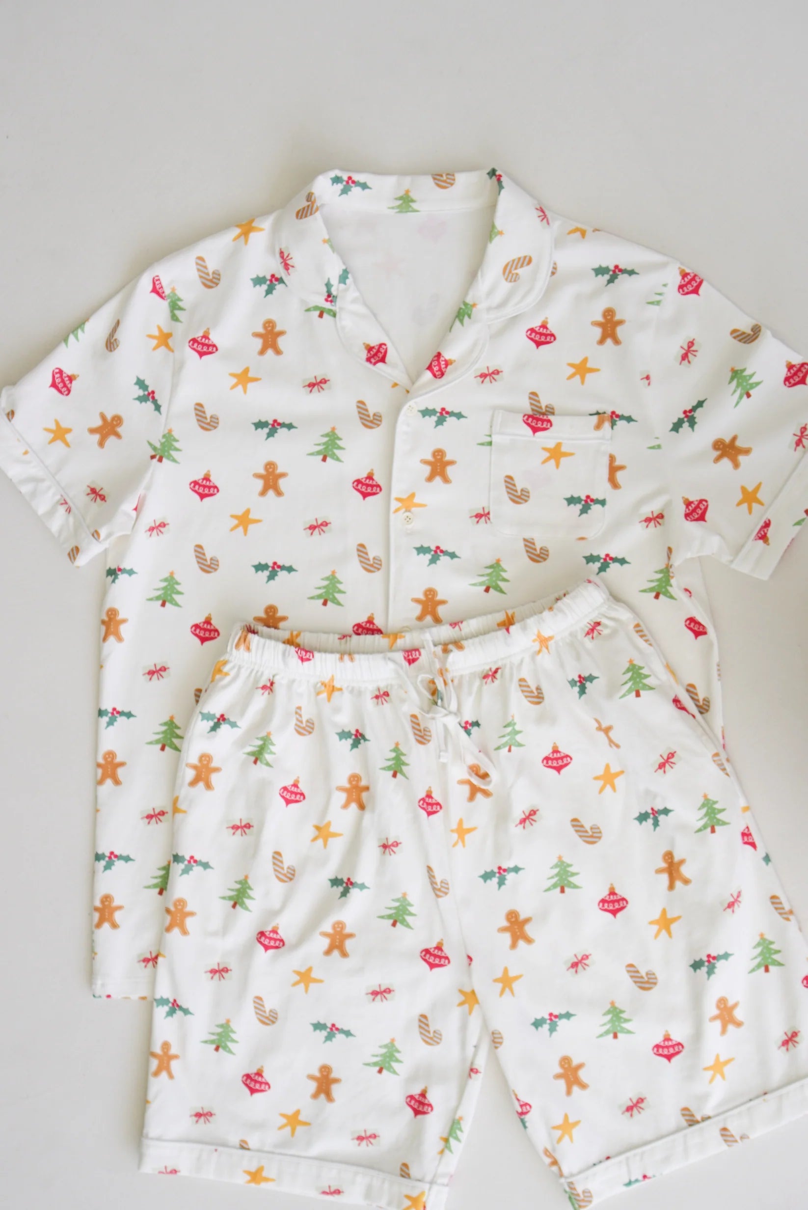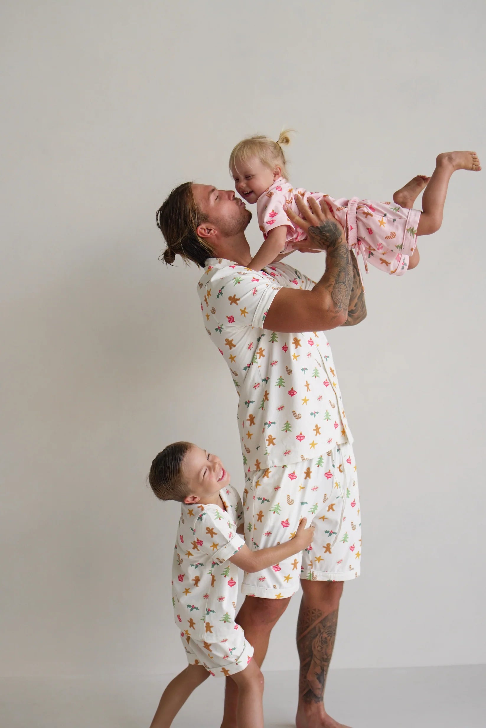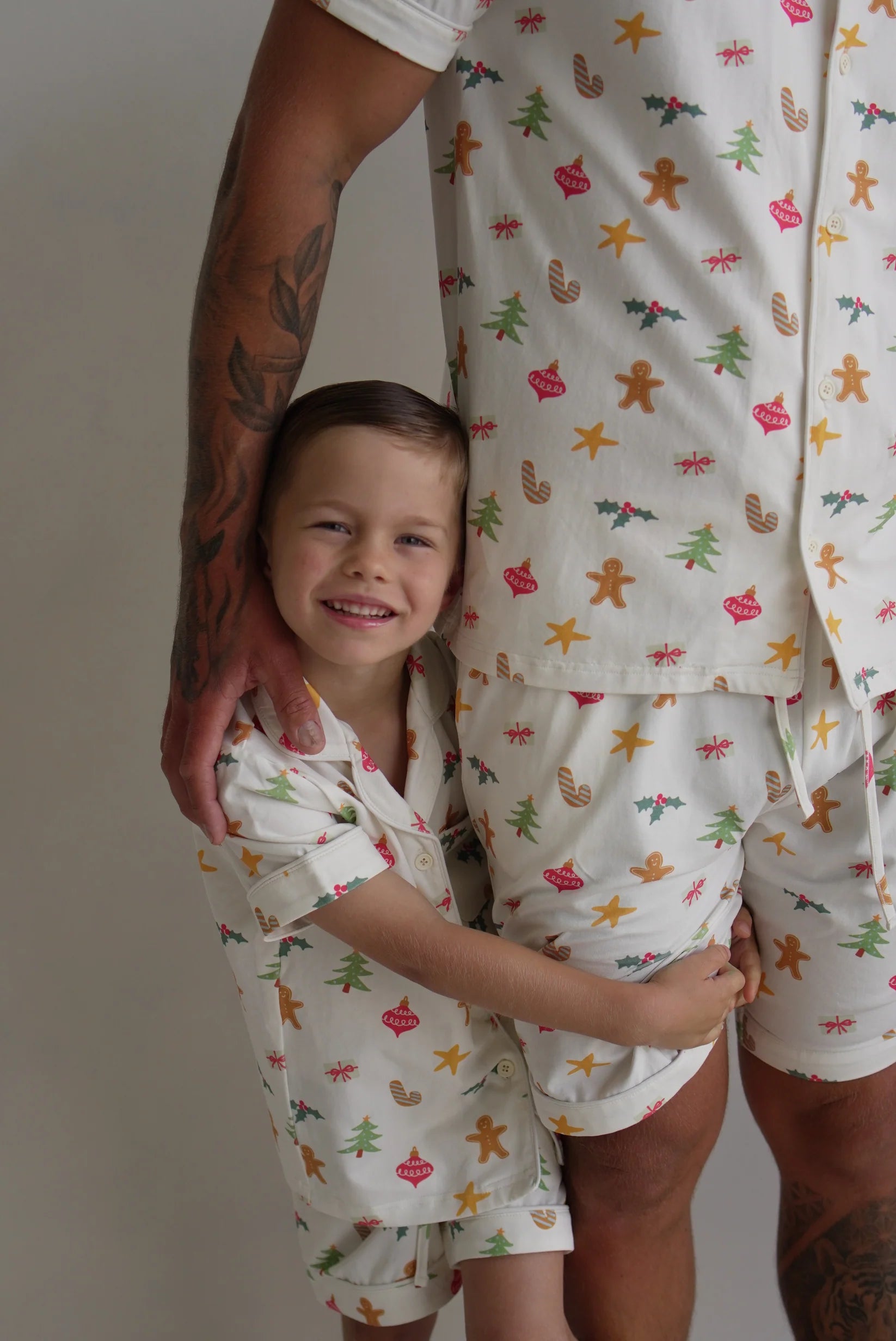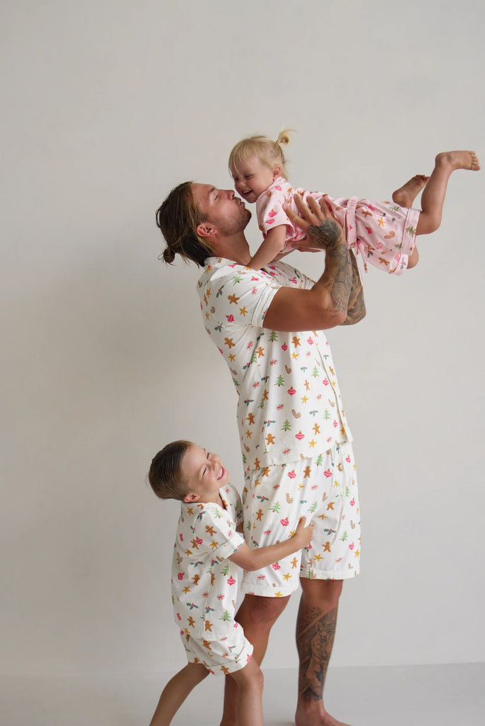 Get into the festive spirit with our button down shirt and shorts set , designed with our much loved Christmas print. Perfect for holiday lounging or festive gatherings, this set combines comfort with cheer. Even better—it’s available in coordinating styles for the whole family, so everyone can join in the fun!