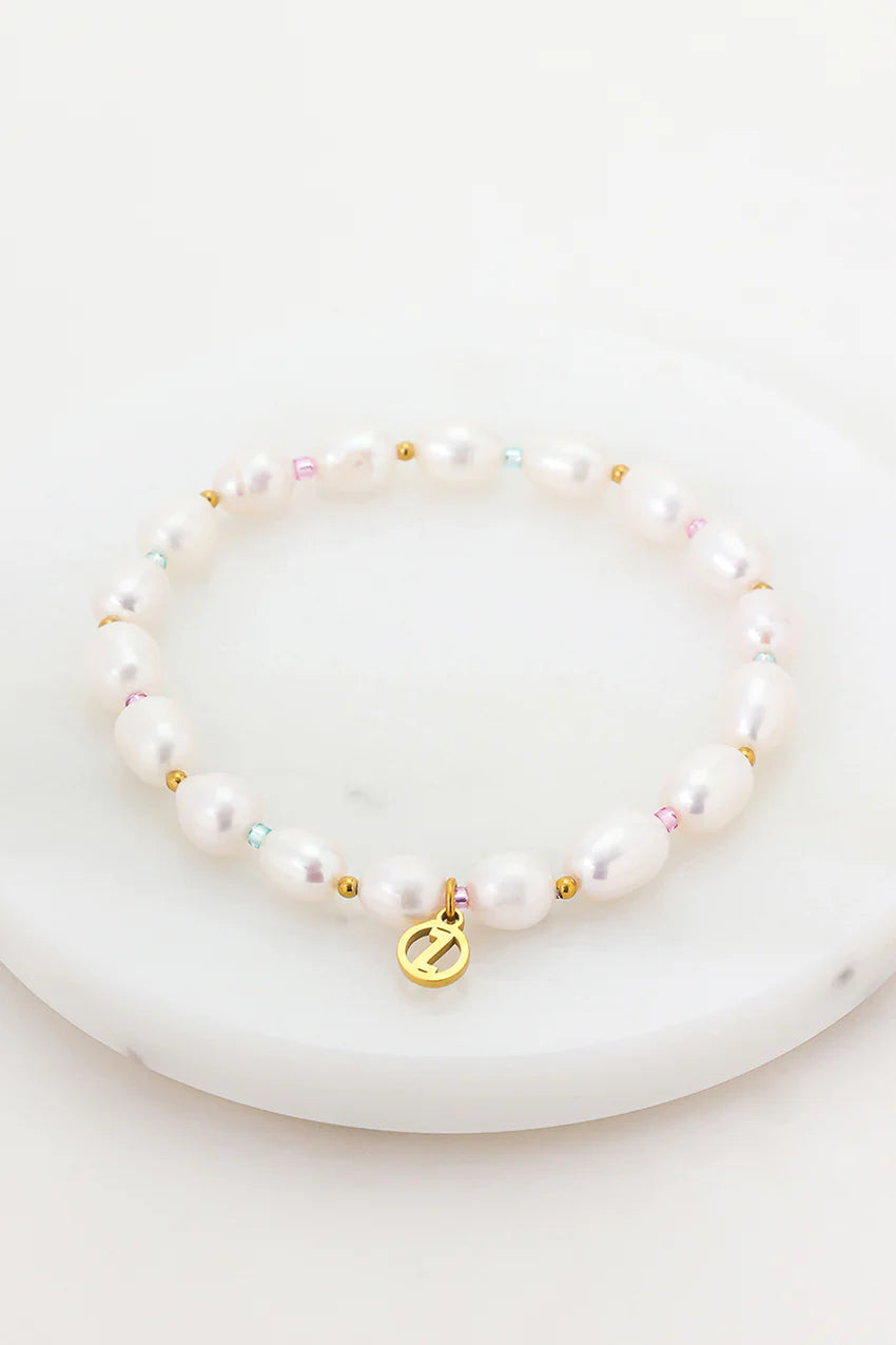 The Aria Pearl Bracelet is the perfect complement to our Aria Pearl Necklace, designed with luminous freshwater pearls and playful pastel-coloured beads. Accented with delicate gold details, this bracelet adds a soft pop of colour while keeping a timeless elegance. Wear it on its own for an understated touch or pair it with the Aria Pearl Necklace for a coordinated look.