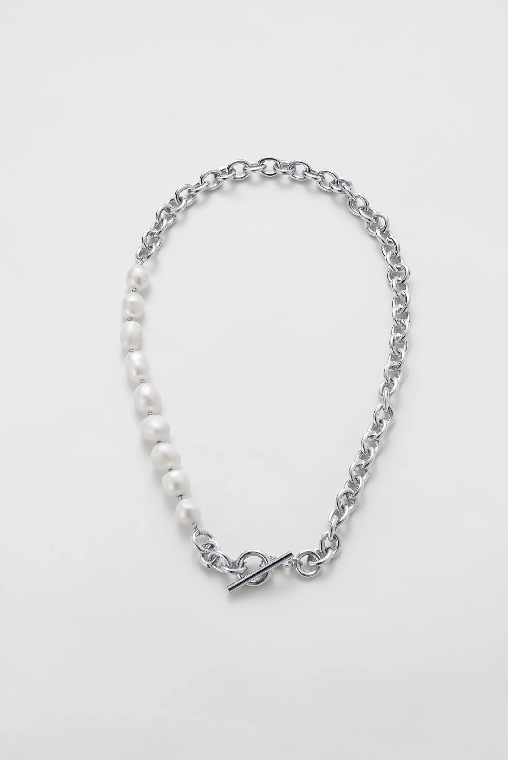 The Eliza Necklace is a modern take on timeless elegance, blending luminous freshwater pearls with bold gold link chain detailing. Finished with a classic fob clasp, this design adds a touch of sophistication while allowing effortless wear. Whether layered with delicate chains or styled solo as a statement piece, Eliza transitions seamlessly from day to night.