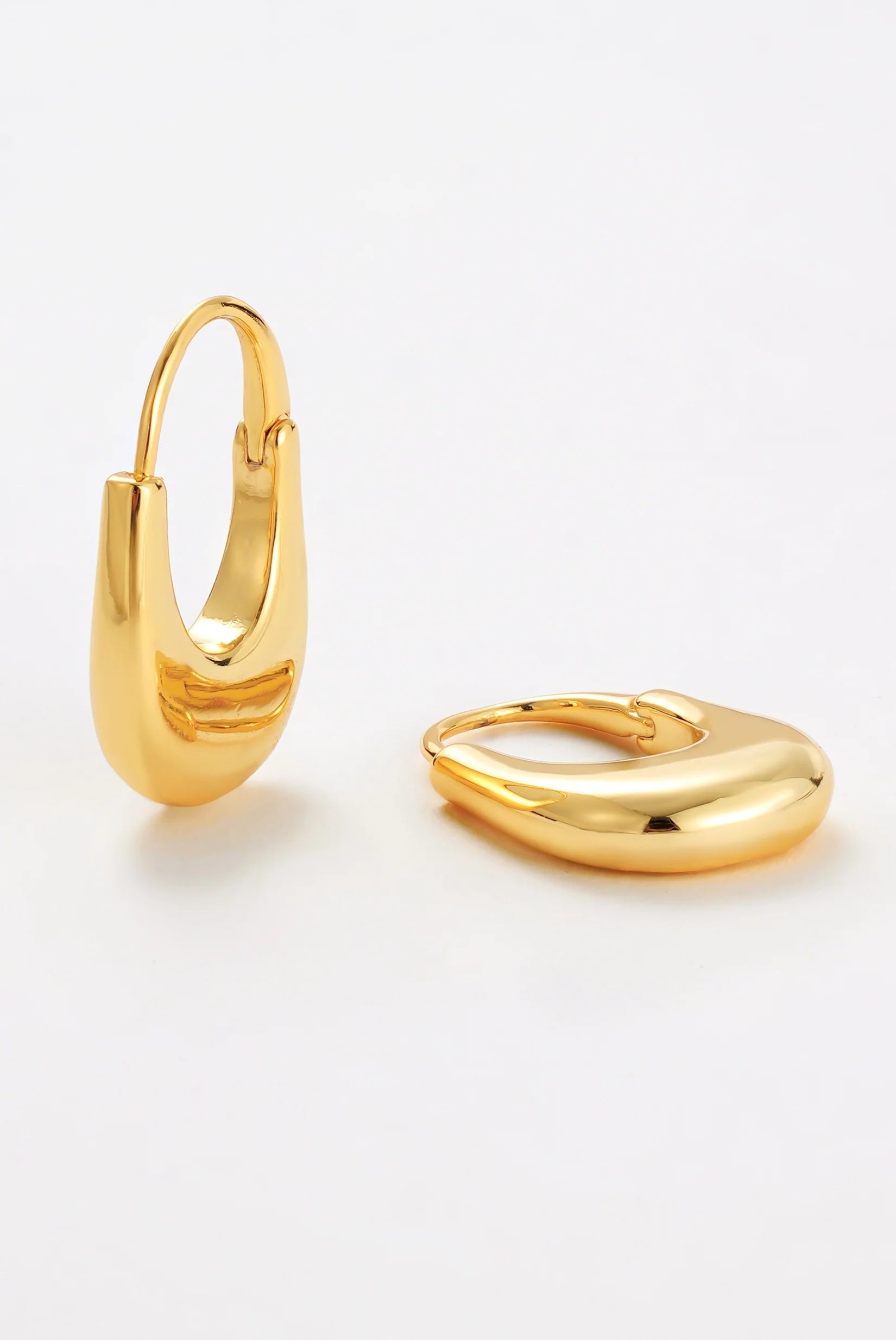 The Sienna Hoop is a modern classic with its smooth, sculptural silhouette and polished gold finish. Designed for effortless everyday wear, this bold yet minimal piece transitions seamlessly from casual styling to evening elegance. Wear solo for a clean statement or layer with delicate studs for a chic, stacked look.