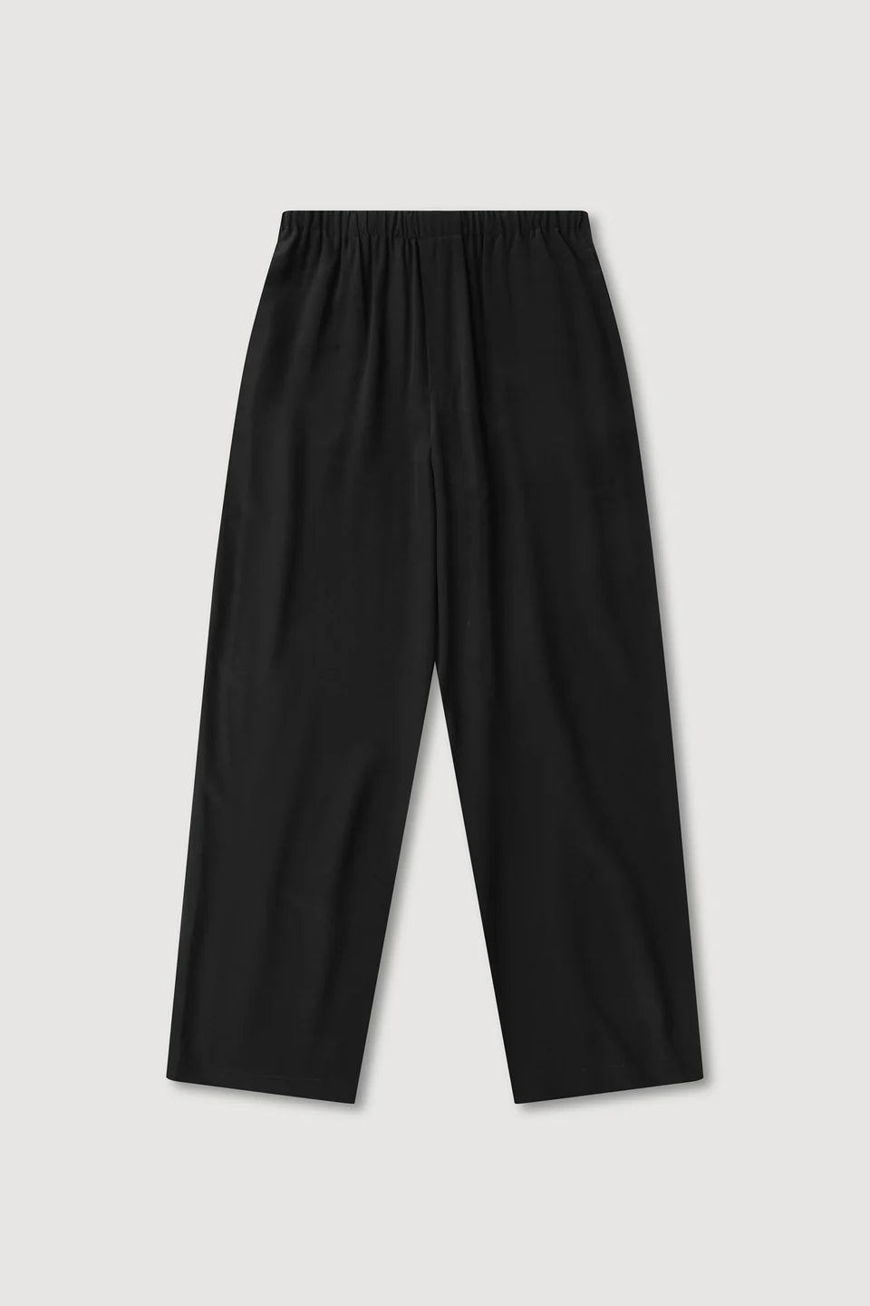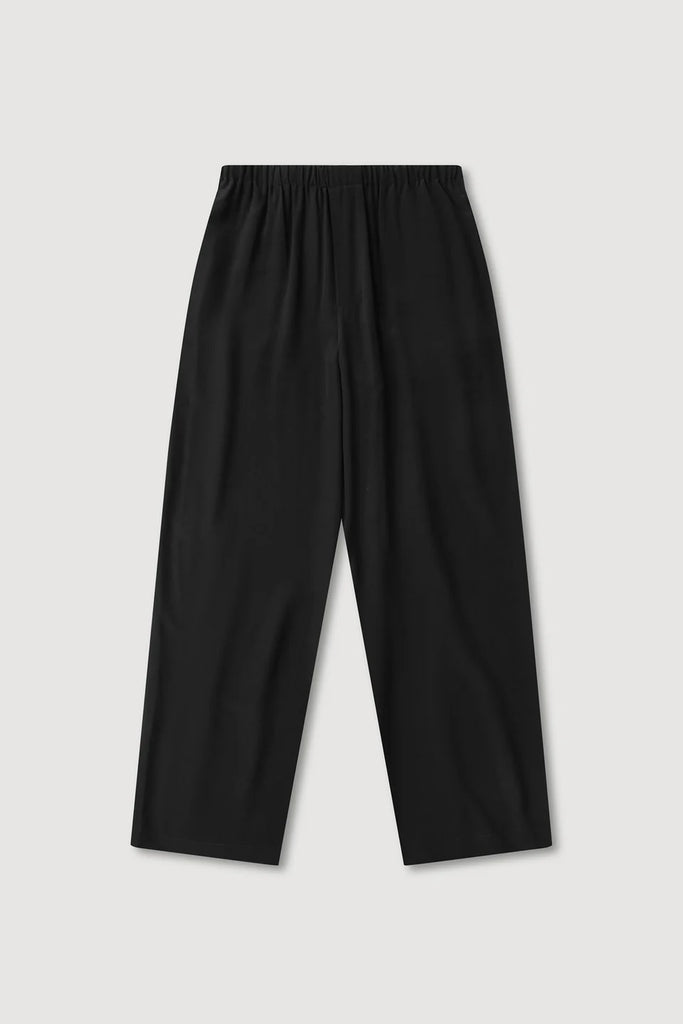 Relaxed, straight leg pant crafted from a lightweight silk. Features side pockets and an elasticated waistband for added comfort and ease.