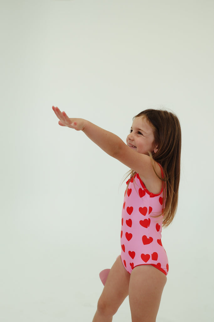 Summer is sorted. Who doesn't want to look cute while playing mermaids in the pool? Our Love You full piece is double lined and features contrast piping to match the heart print. Super chic, super fun.