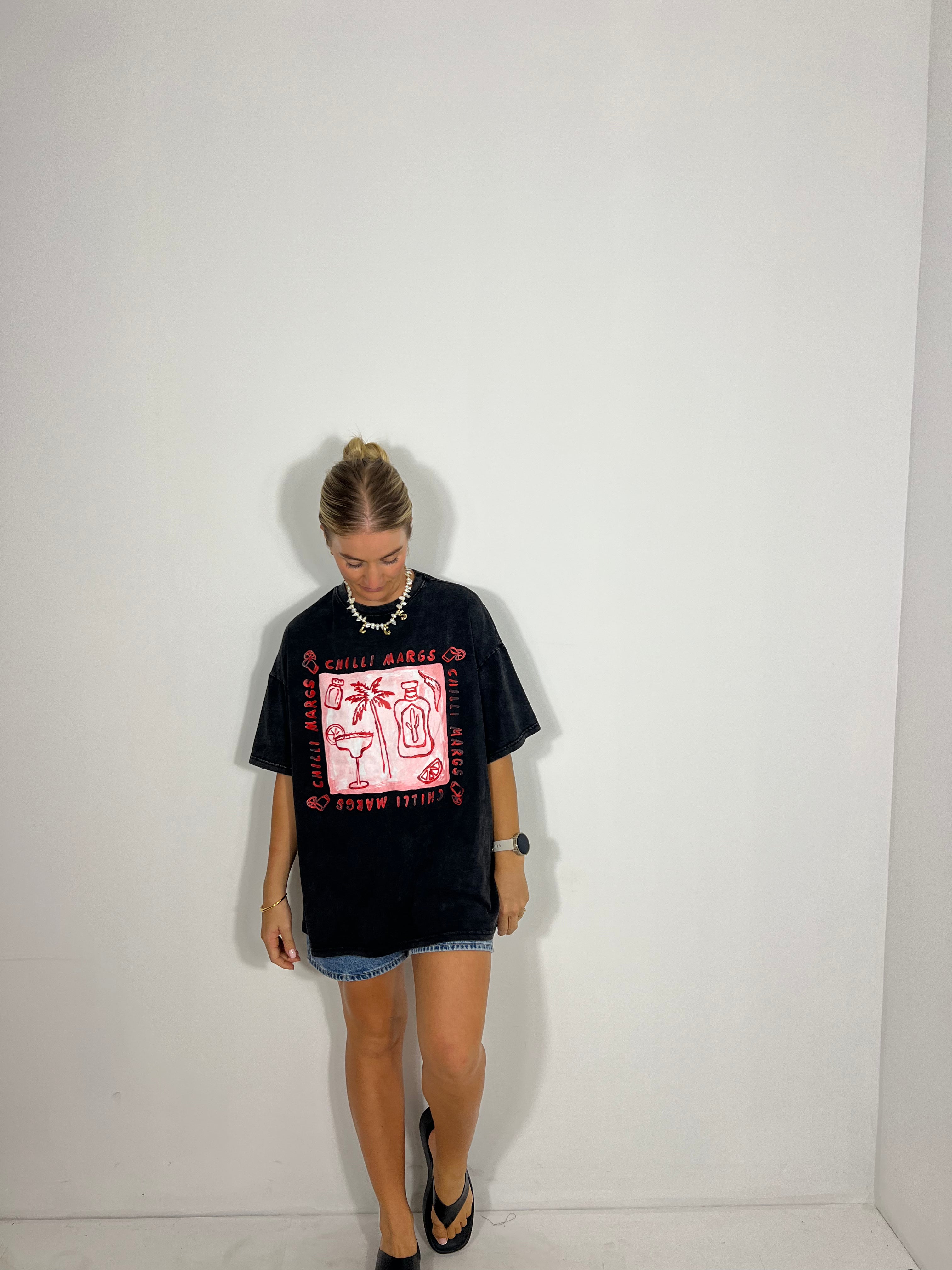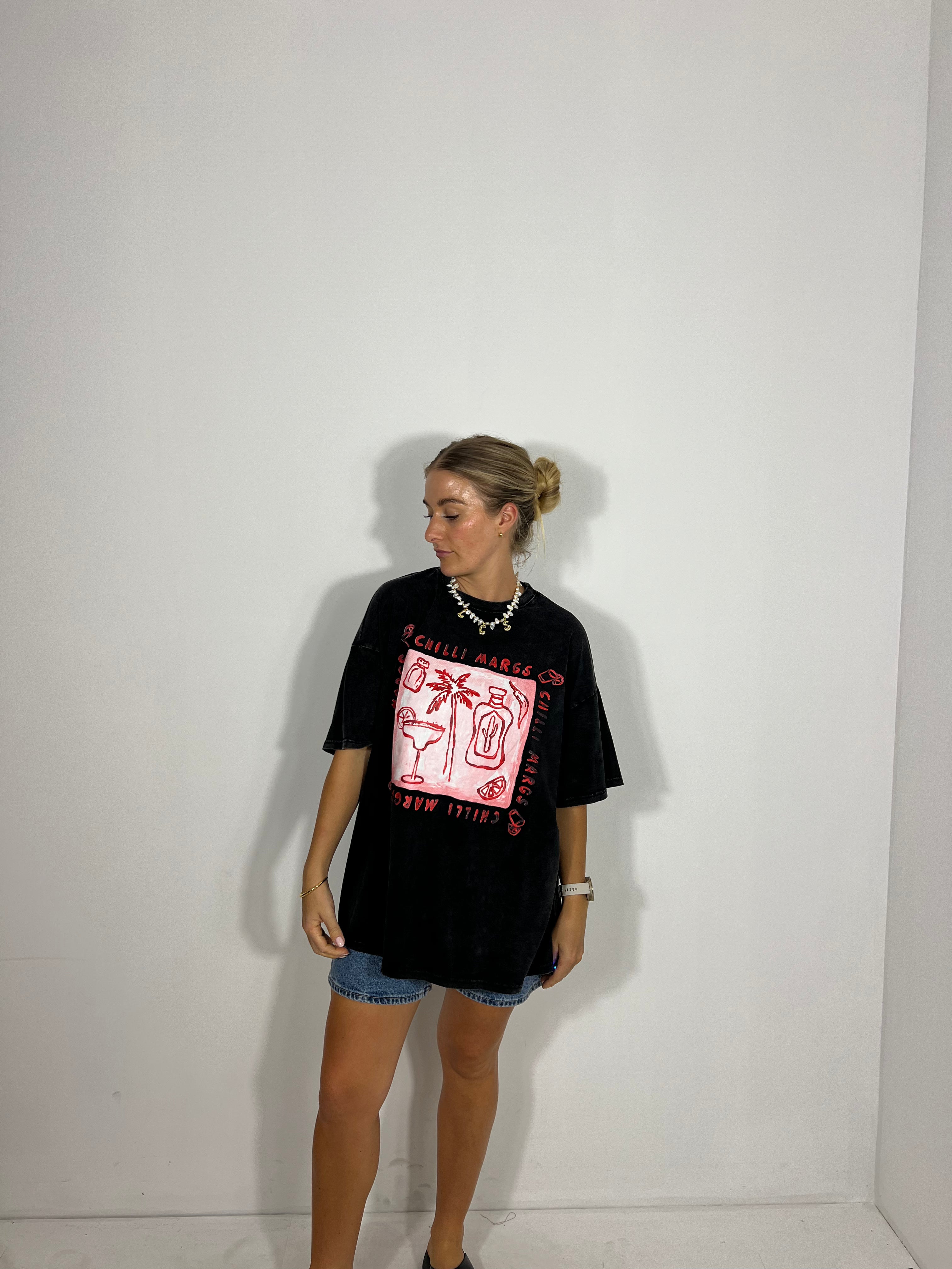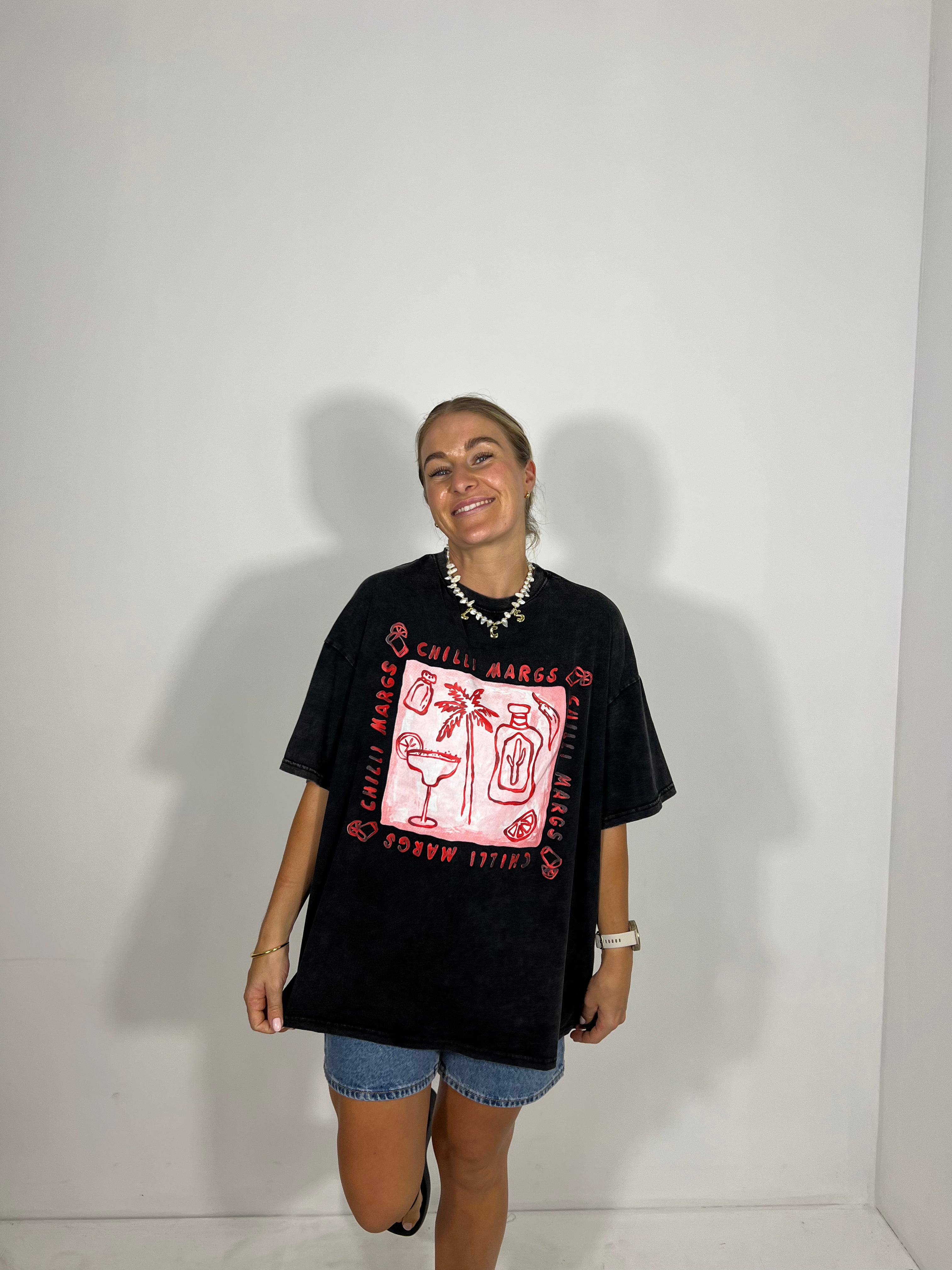 Everyone loves the relaxed, laid-back vibe of a slouchy oversized tee, and our By Frankie Chilli Margs Tee is no exception! Crafted for ultimate comfort and effortless style, this tee is the perfect addition to your wardrobe. Whether you're lounging at home or out with friends, it’s sure to bring a little fun and flair to your everyday look.