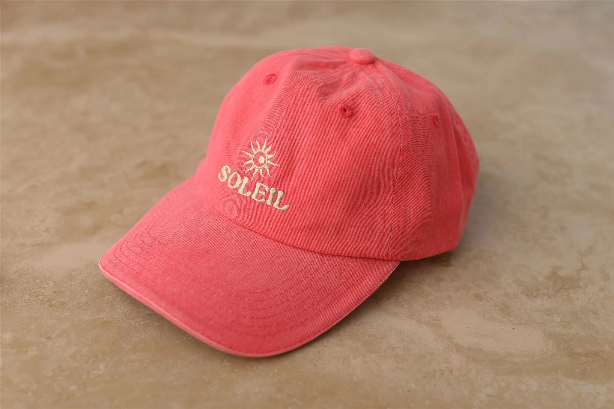 The Soleil Cap is crafted from premium cotton with a lived-in, acid-wash finish — the perfect shade of faded red that feels like it’s been worn and loved for seasons. Lightweight and unstructured, it’s designed for comfort, movement, and everyday wear.