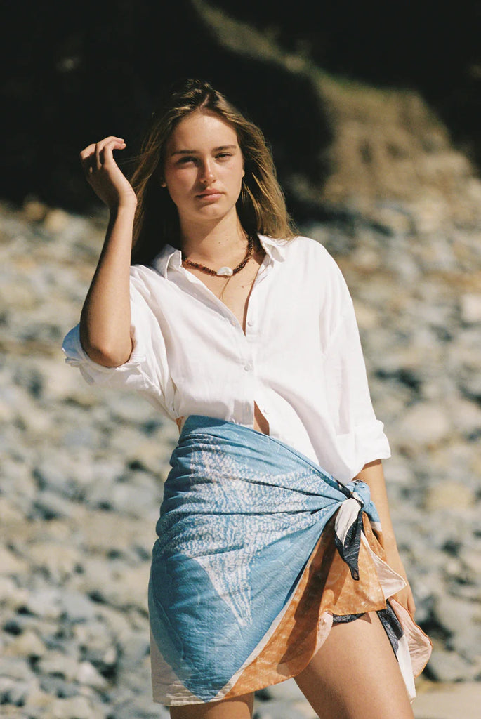 Consciously designed with your holiday rituals in mind, the Starfish Sarong folds seamlessly into your travel wardrobe. Whether tied long, wrapped short, styled as a halter, or a headscarf, it offers versatility with an elevated edge.
