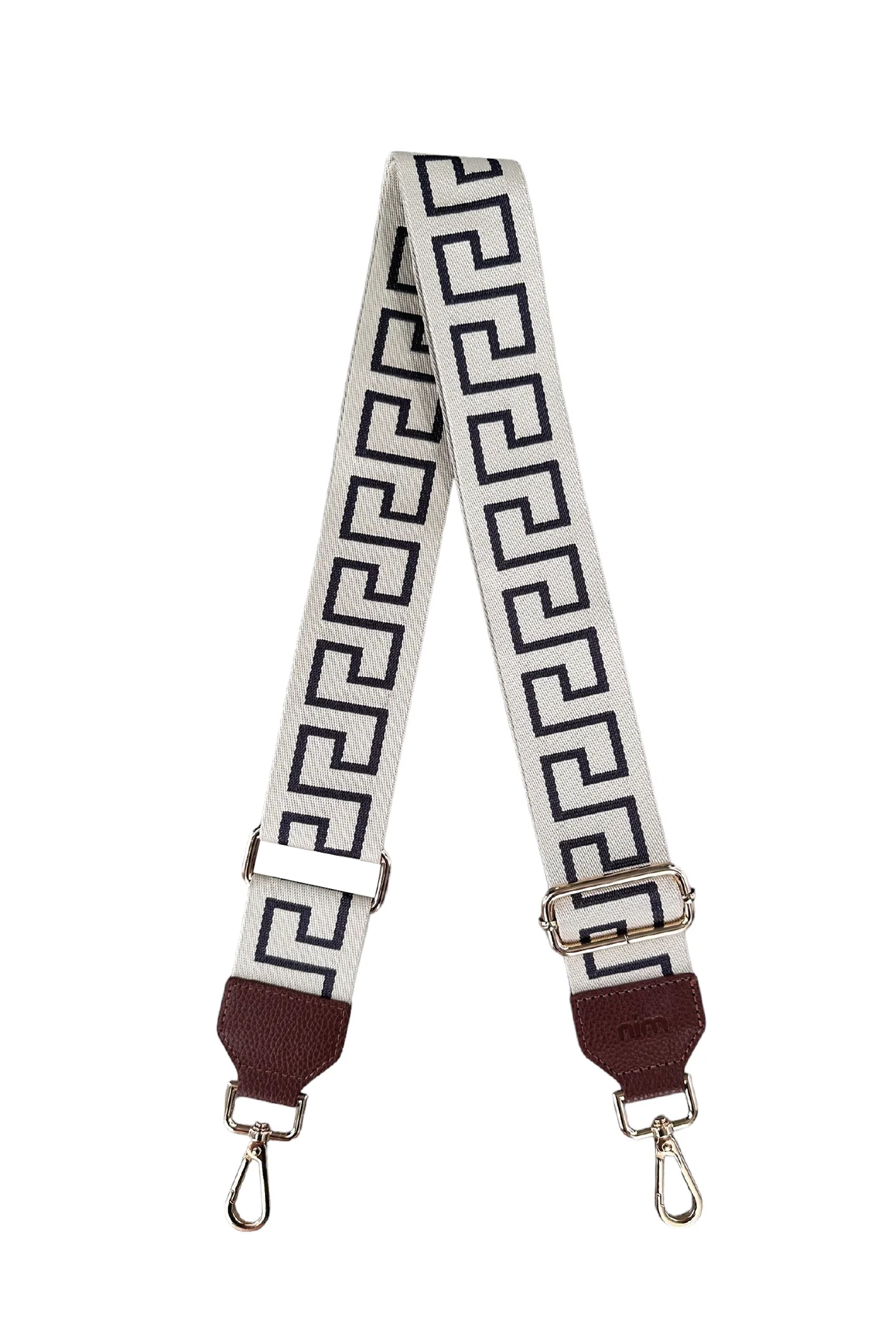 Crafted from our custom jacquard webbing, finished with premium reinforced pebble vegan leather and gold hardware.