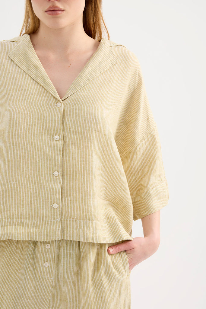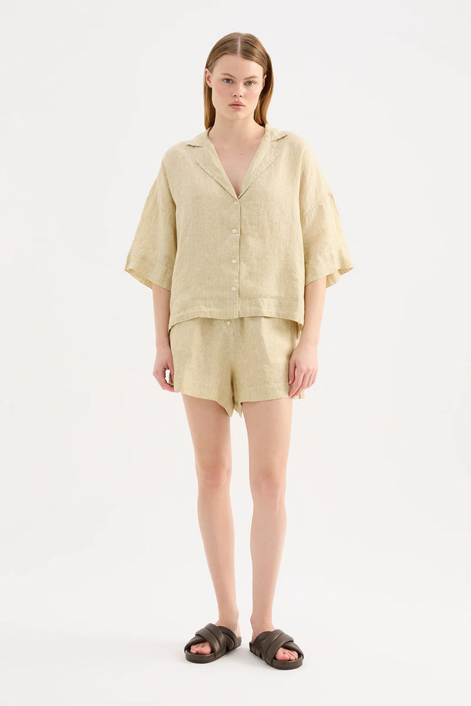 Nude Lucy Lounge Stripe Linen Shirt - Moss Stripe