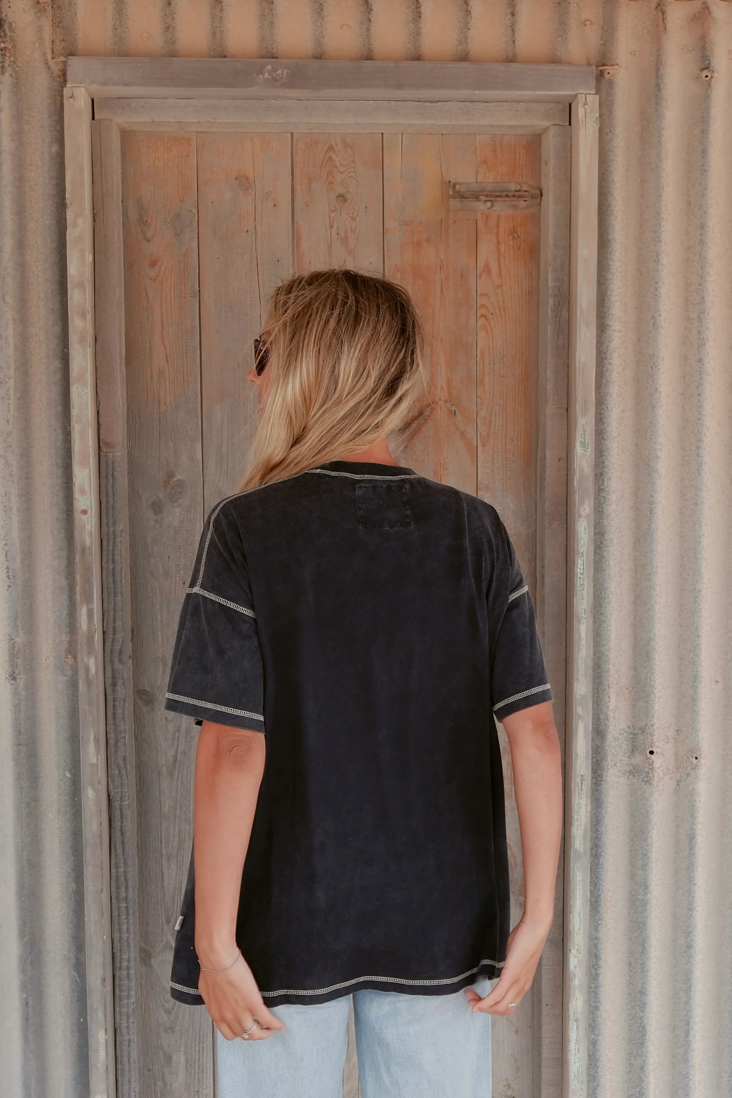 PLEASE NOTE: Our stonewash pieces are one-of-a-kind. The wash process can create small holes, colour variations, and fading that give each item its own unique look. Over time, they’ll continue to soften and fade with wear. For best results, cold wash and dry in the shade.