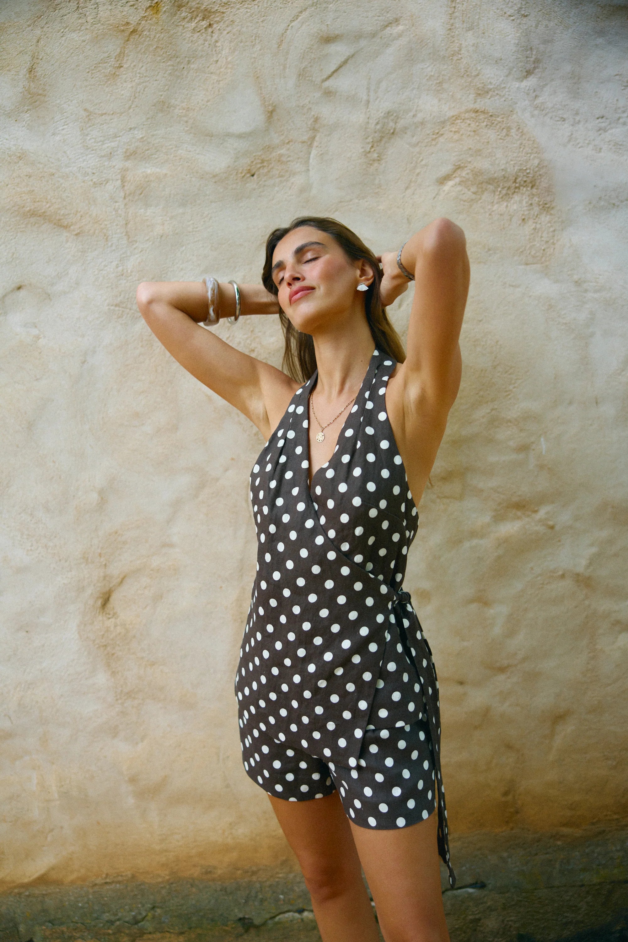ORTC Savannah Linen Shorts - Carob Polkadot