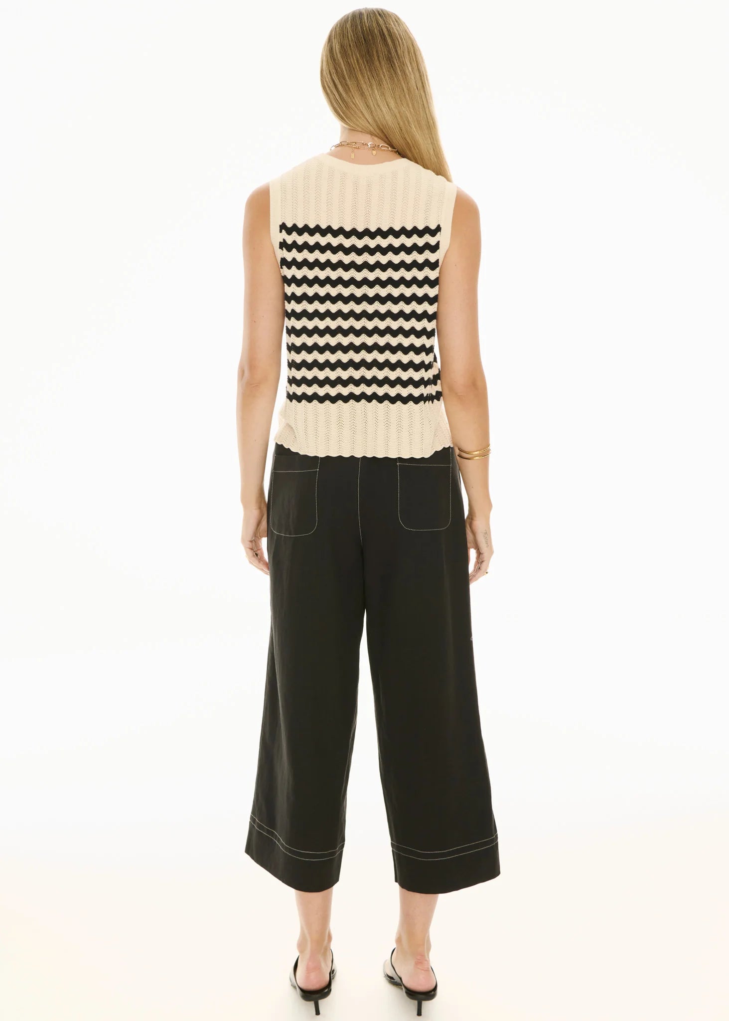 With a contrast panel at the top and bottom and wave pointelle stripe detailing, the Bonde Knit Tank is an elevated take on a classic piece.