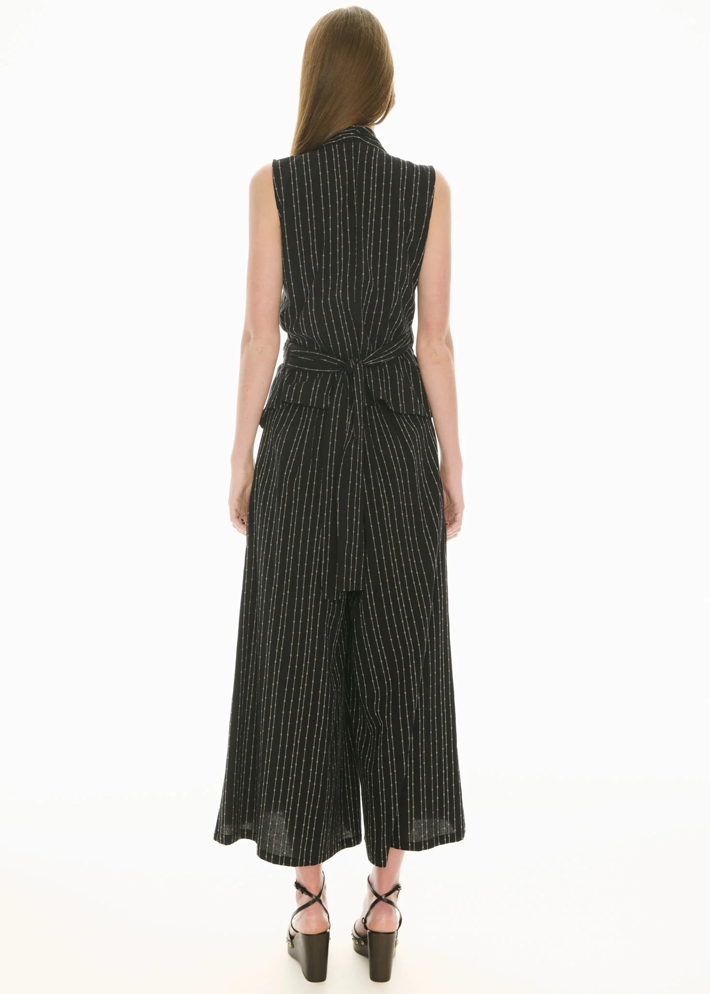 Made from a textured cotton blend with a fine stripe, the Chelsea Wide Leg Pant features a flat waistband at the front and an elasticised back for comfort.