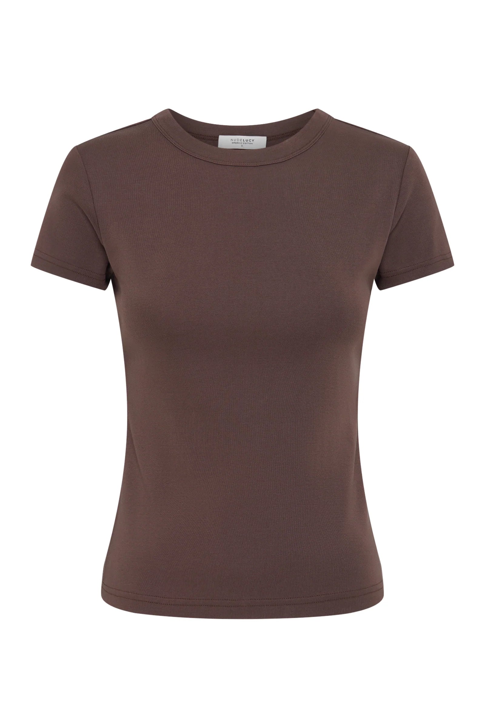 The Organic Baby Tee is made from a lightweight organic cotton jersey, which has a soft, breathable hand feel. The silhouette is a flattering close fit and finishes at the hips. Features include a crew neck, and short, fitted sleeves. This can be tucked in or worn over midrise bottoms.