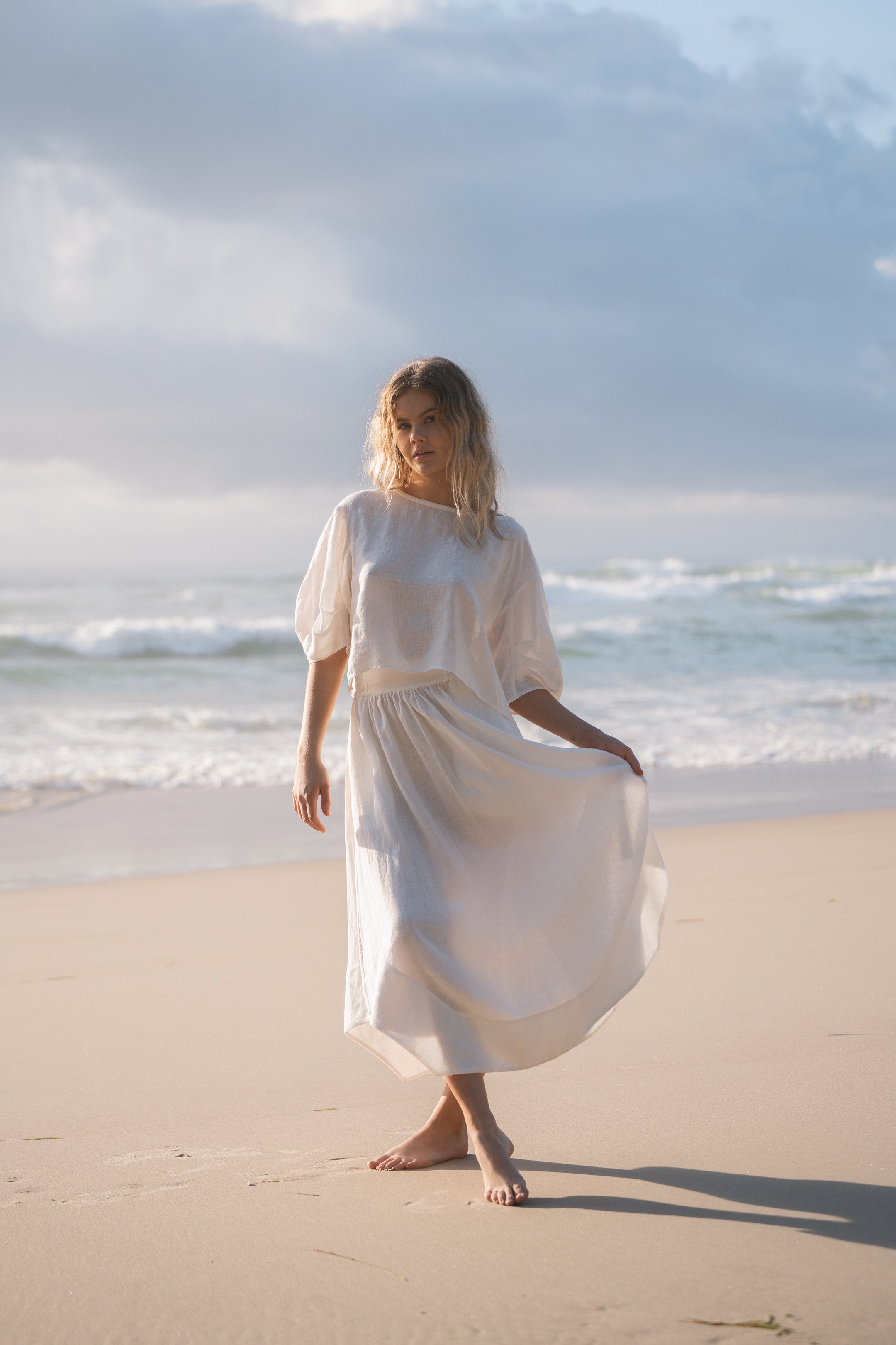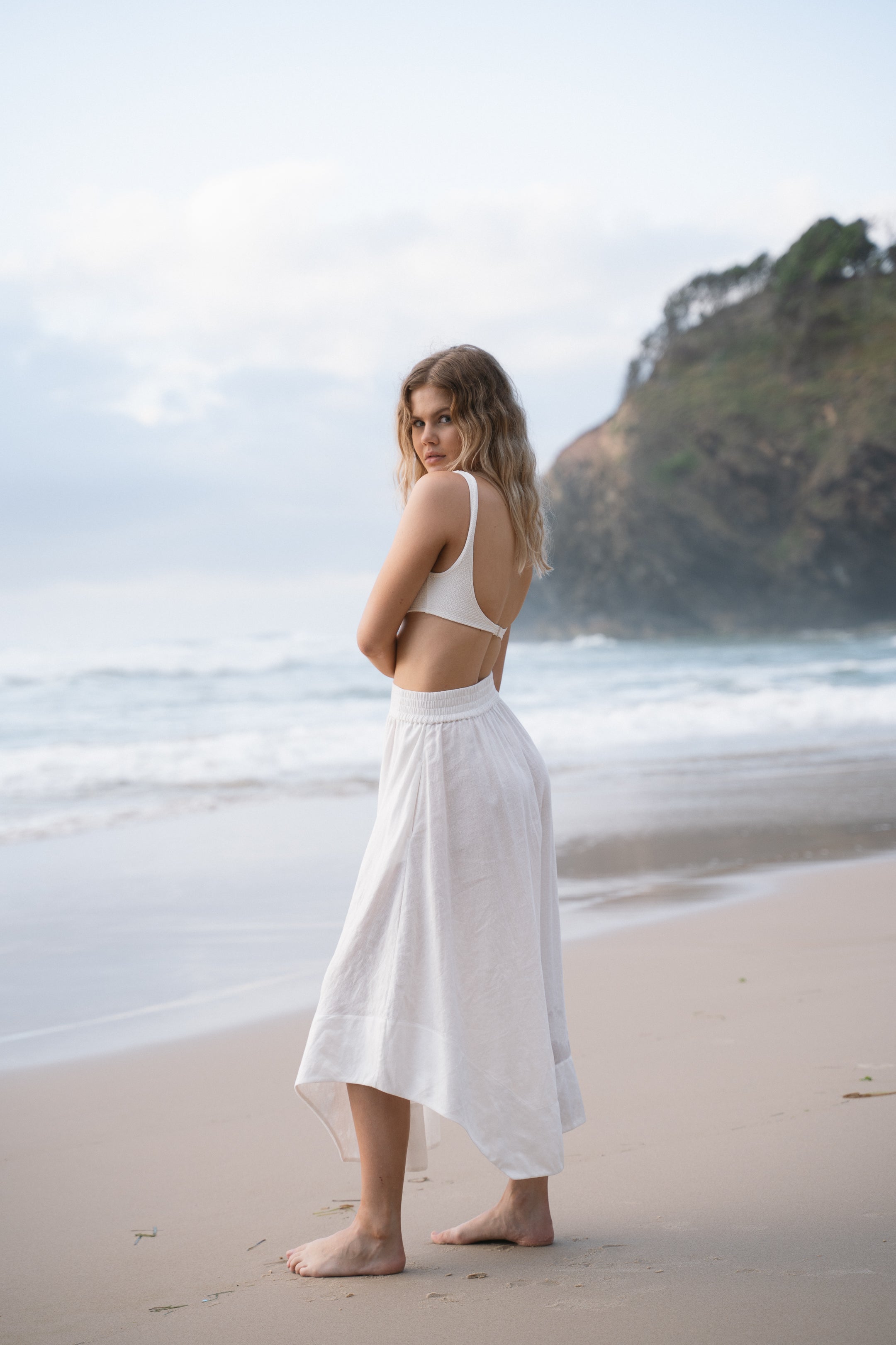 Our Hannah Linen Skirt is made of 100% organic linen for a natural and stylish look. With an asymmetrical hi-low hem, side pockets, and an elastic waist band, this skirt is as sensationally functional as it is fashionable! Plus, it's based on our beloved Frida linen dress, so you know it's tried and true.