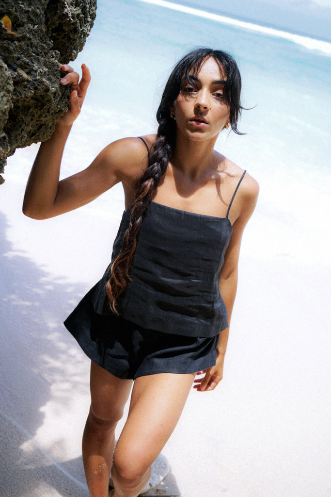 Lilly Pilly Rosa Linen Silk Cami - Black
