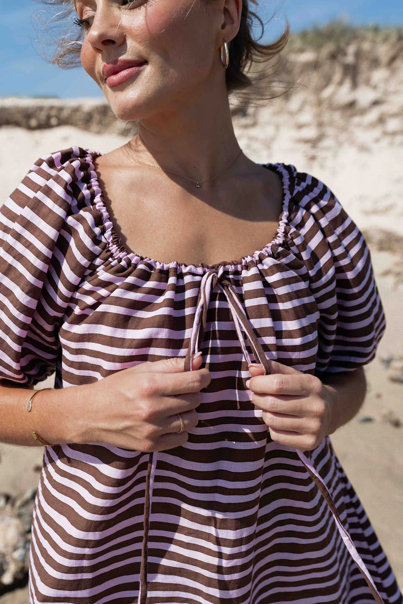 The Betty Dress, in our exclusive hand-painted stripe print by SOAN Print House