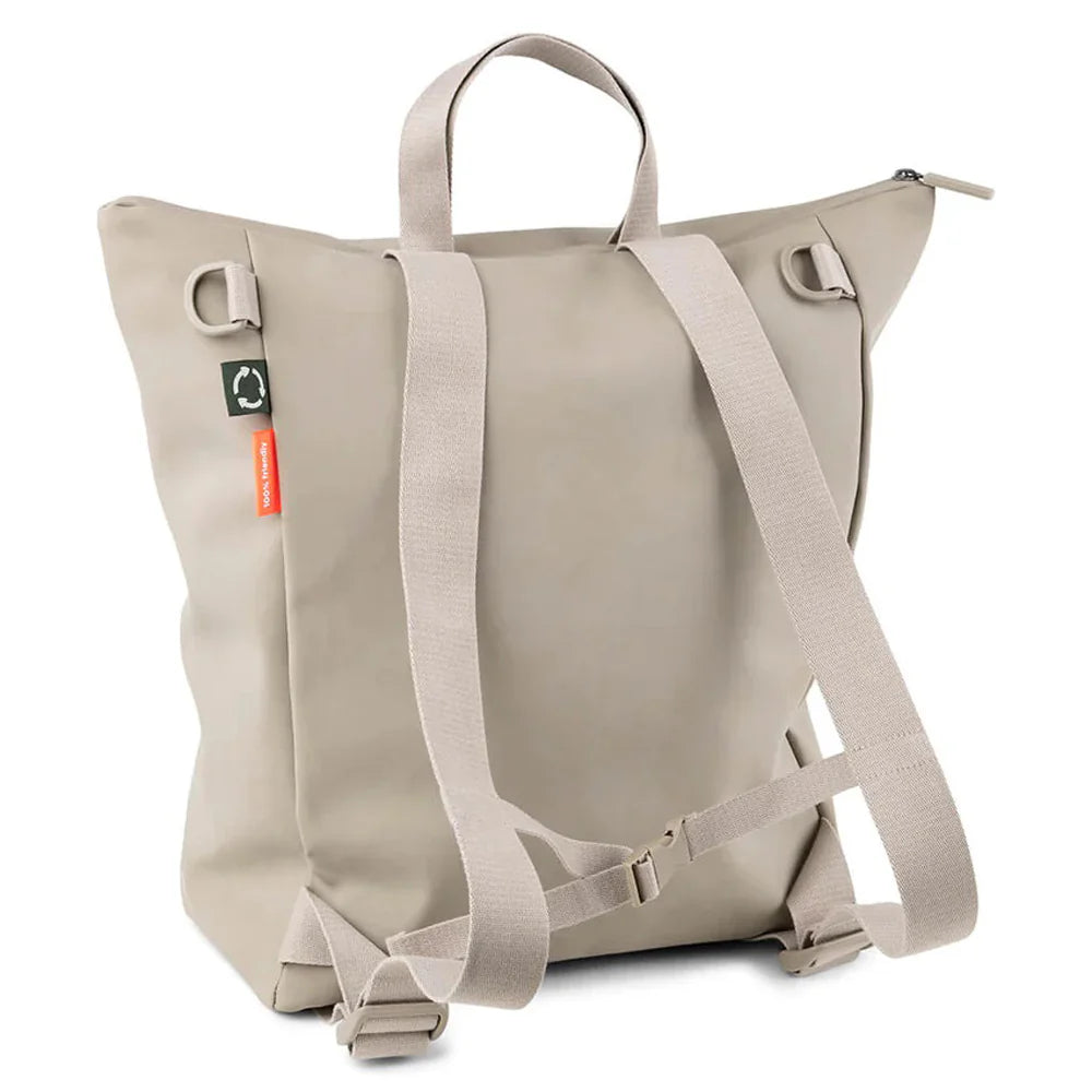e waterproof zippers and surface make the backpack weatherproof. Go on adventures in style with this unisex backpack in a lovely sandy tone.
