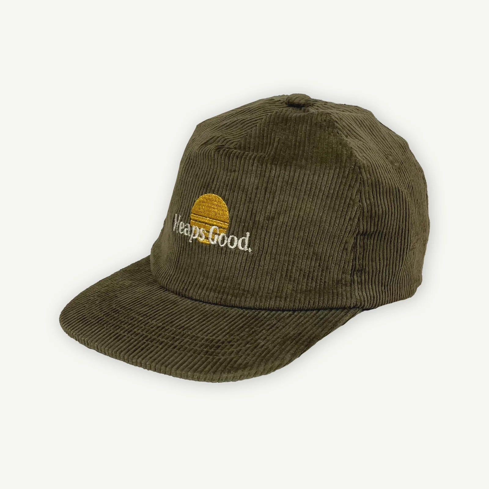 Aussie colloquialism at it's best. Embroidered onto a khaki cord its the perfect cap for your heaps good little pal.  Match mum, dad or an older sibling in the Heaps Good Adults Cord Cap in Khaki