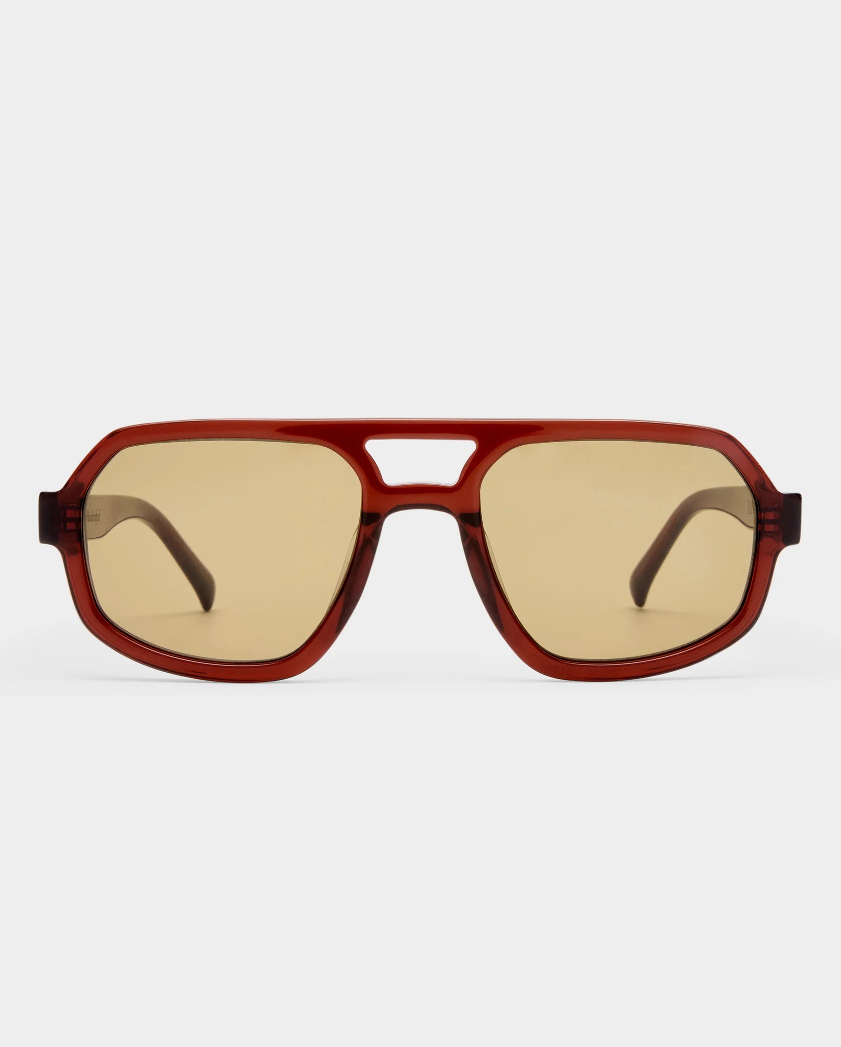 • Finished in a premium cherry crystal frame with khaki tint lenses.