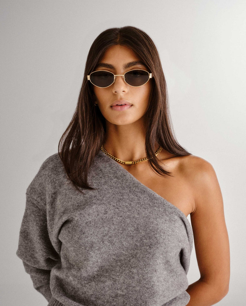 The Boston is an ode to the 90’s, which evokes a vintage aesthetic. This oval silhouette showcases a striking metal arm adorned with signature branding, exuding timeless sophistication. Its premium wire construction embodies elevated craftsmanship and attention to detail.