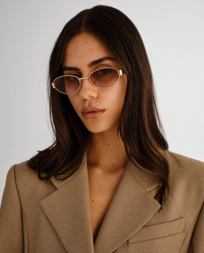 The Boston is an ode to the 90’s, which evokes a vintage aesthetic. This oval silhouette showcases a striking metal arm adorned with signature branding, exuding timeless sophistication. Its premium wire construction embodies elevated craftsmanship and attention to detail.