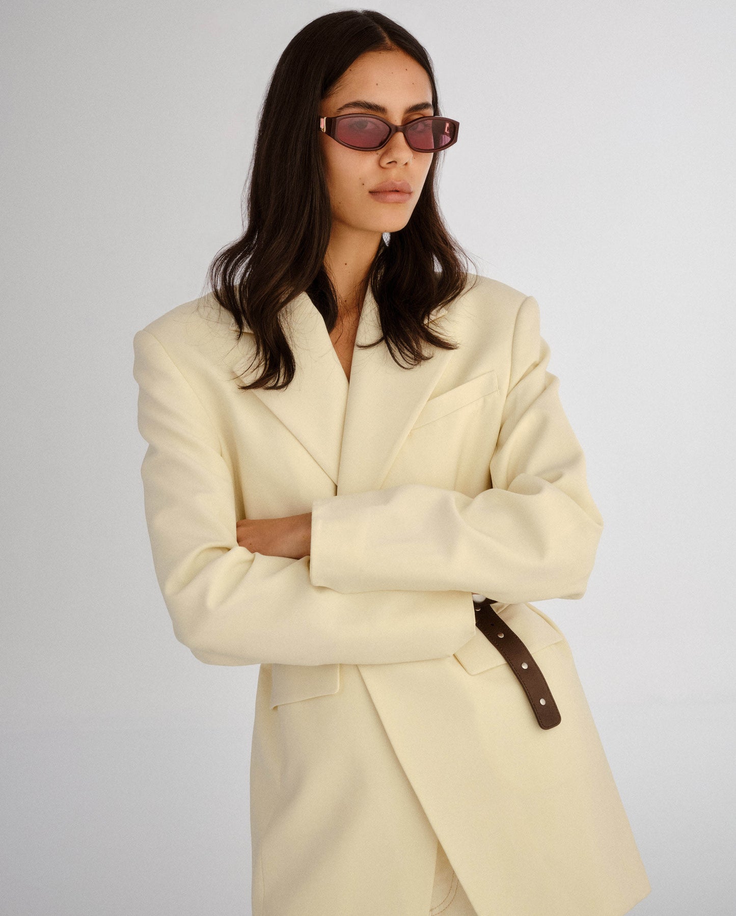 A refined take on a modern staple. This luxe rectangle frame features sculpted angles and polished gold hardware detailing at the temples. Understated yet striking, these sunglasses are designed for the girl with effortless style and a sharp eye for detail. Clean lines, timeless shape - made to go with everything.