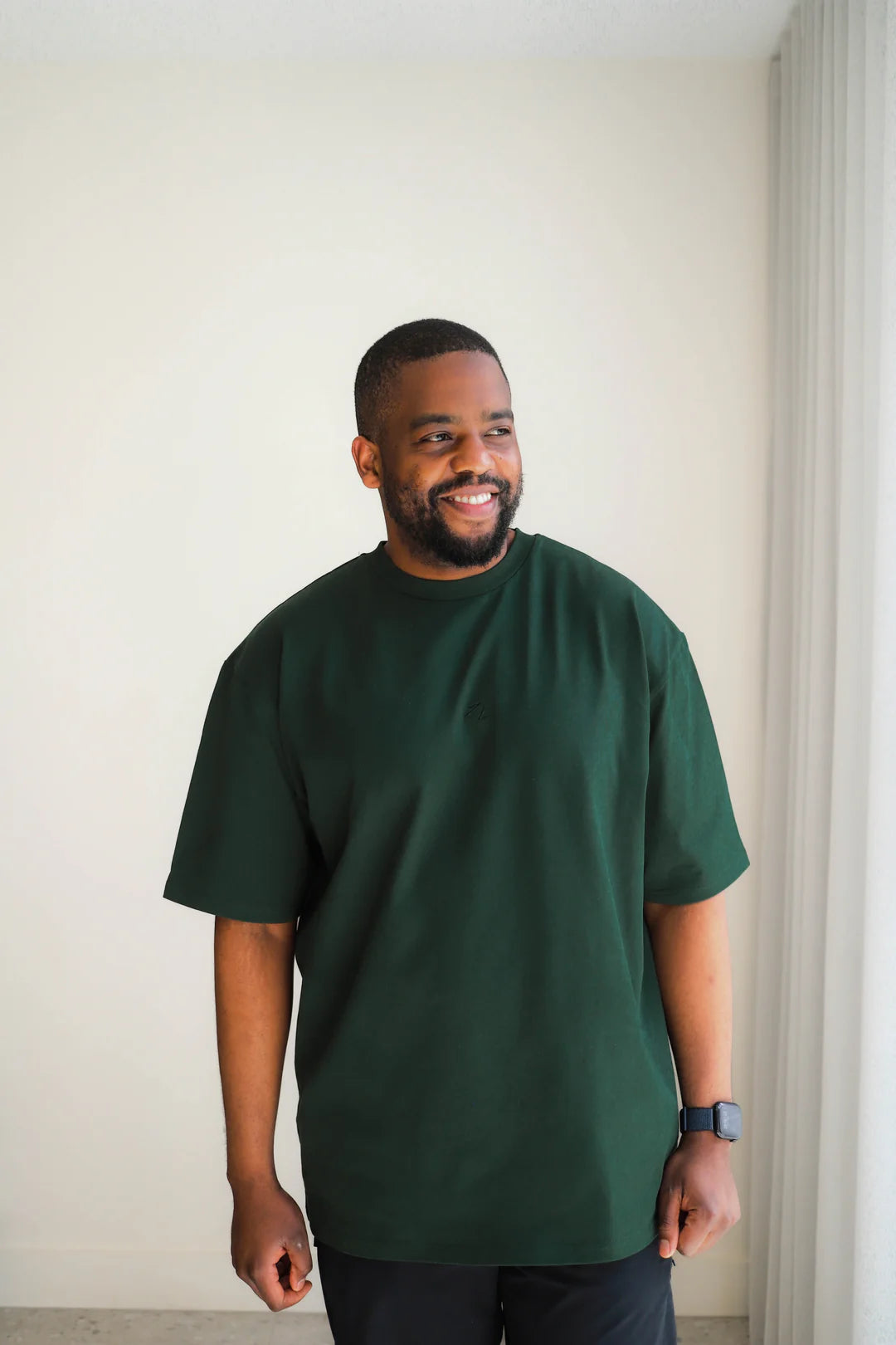 Dark green loose fit tee, featuring our ZL embroidered design on front.