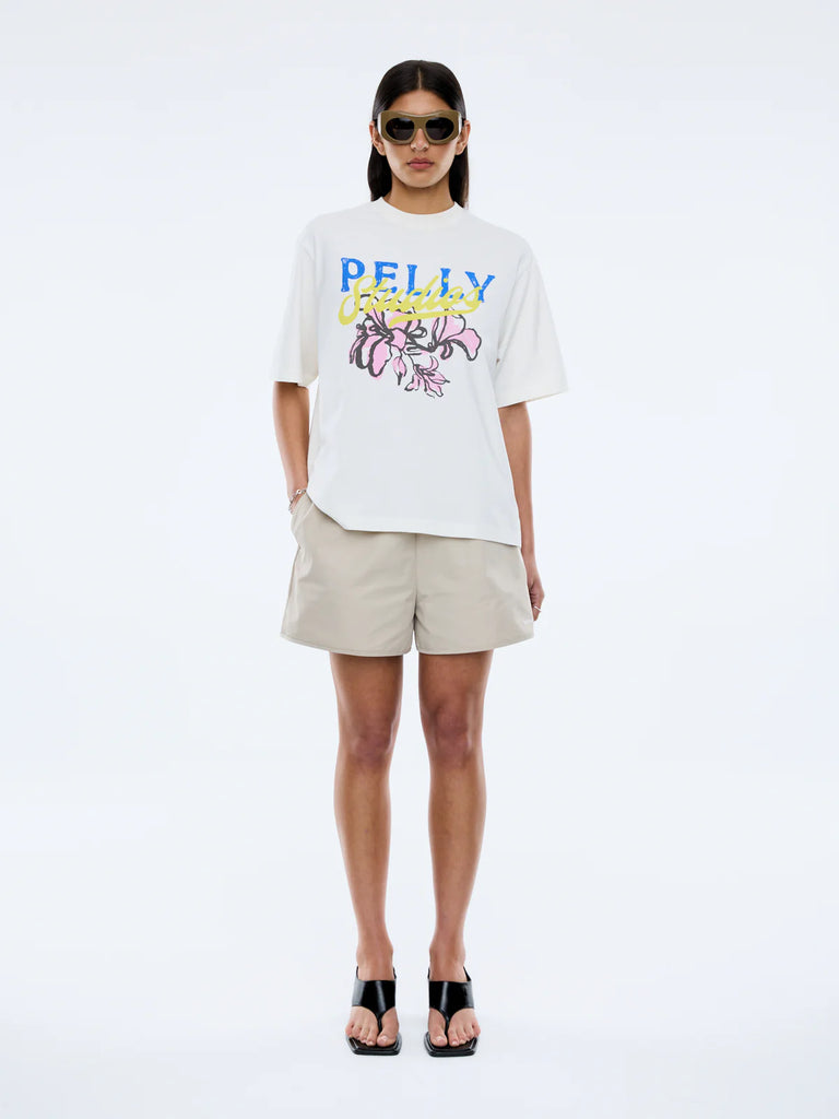 The Pelly Floral Tee in vintage white is crafted from cotton, featuring a boxy relaxed-fit tee silhouette. The tee features a floral inspired graphic exclusively designed inhouse.